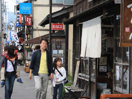 昭和30年代までは市内有数の賑わいを見せていた七日町通り。地域性が感じられず、全国の地方都市によく見られる光景。モータリゼーションの発達により、中心市街地から郊外型の大規模店舗に集客が移り、急激に衰退した。七日町通りについては、幸いにも、この急激な衰退が、逆に古い建物が解体されず残ることにつながった。昭和30から40年代に、近代化を表現するため和風建築を洋風建築に見せるファサード改修が行われ、建物の特徴が隠されている。町を歩く人は少なく、商売が成り立たず、さらには、高齢化が進み、地域コミュニティーの維持すら間々ならない状況であった。
