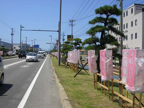 当該区間の国道7 号は日交通量約2 万台、沿線には商業施設が多く立地しており、ドライバー・歩行者の多くの方に、会員一人一人が丁寧に剪定・管理している個性豊かな黒松を楽しませてくれます。