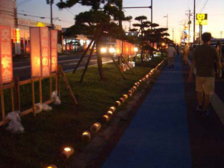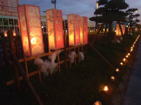 のしろ白神ネットワークの一員として、平成19 年から地域(住民)活動の活性化を目的としている「のしろまち灯り」にも参画しており、黒松並木に会員達が製作した田楽(灯籠)を約100基設置し、杉灯りと共に木都能代の地域イベント盛り上げに一役買っています。